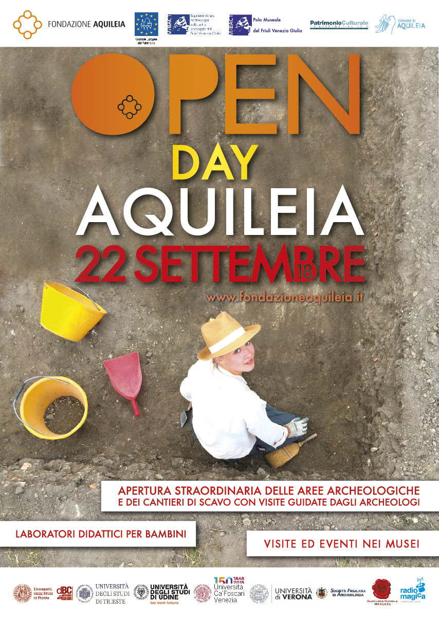 Sabato 22 settembre, in occasione delle Giornate europee del Patrimonio, “Open Day” delle aree archeologiche e dei cantieri di scavo ad Aquileia, laboratori didattici per bambini, spettacolo #smArt Radio Live, aperture straordinarie del Museo Archeologico Nazionale e Paleocristiano.
